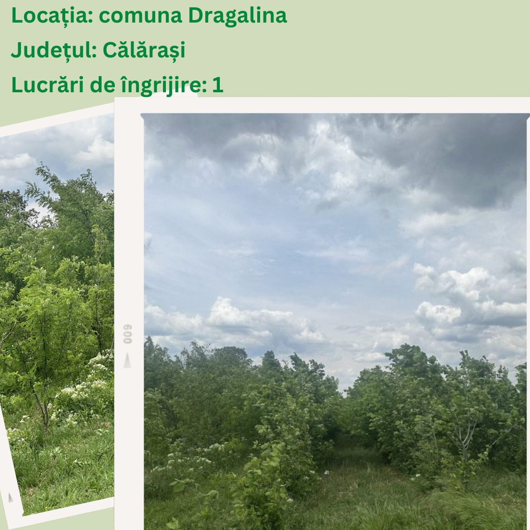 Comuna Dragalina, jud. Călărași -2.7 hectare, împărțite în 3 parcele pe care s-au înființat perdele forestiere pentru protejarea comunității locale – nordul satului Constantin Brâncoveanu, Liceul „Duiliu Zamfirescu” și stația de captare apă a satului Constantin Brâncoveanu. Localitatea este frecvent afectată de fenomene meteo extreme, printre care înzăpeziri, rafale de vânt de 140 km/h, și chiar tornade. Înființarea perdelelor forestiere de protecție pot ameliora aceste probleme în doar câțiva ani, pe lângă restul beneficiilor aduse de pădurea în sine.