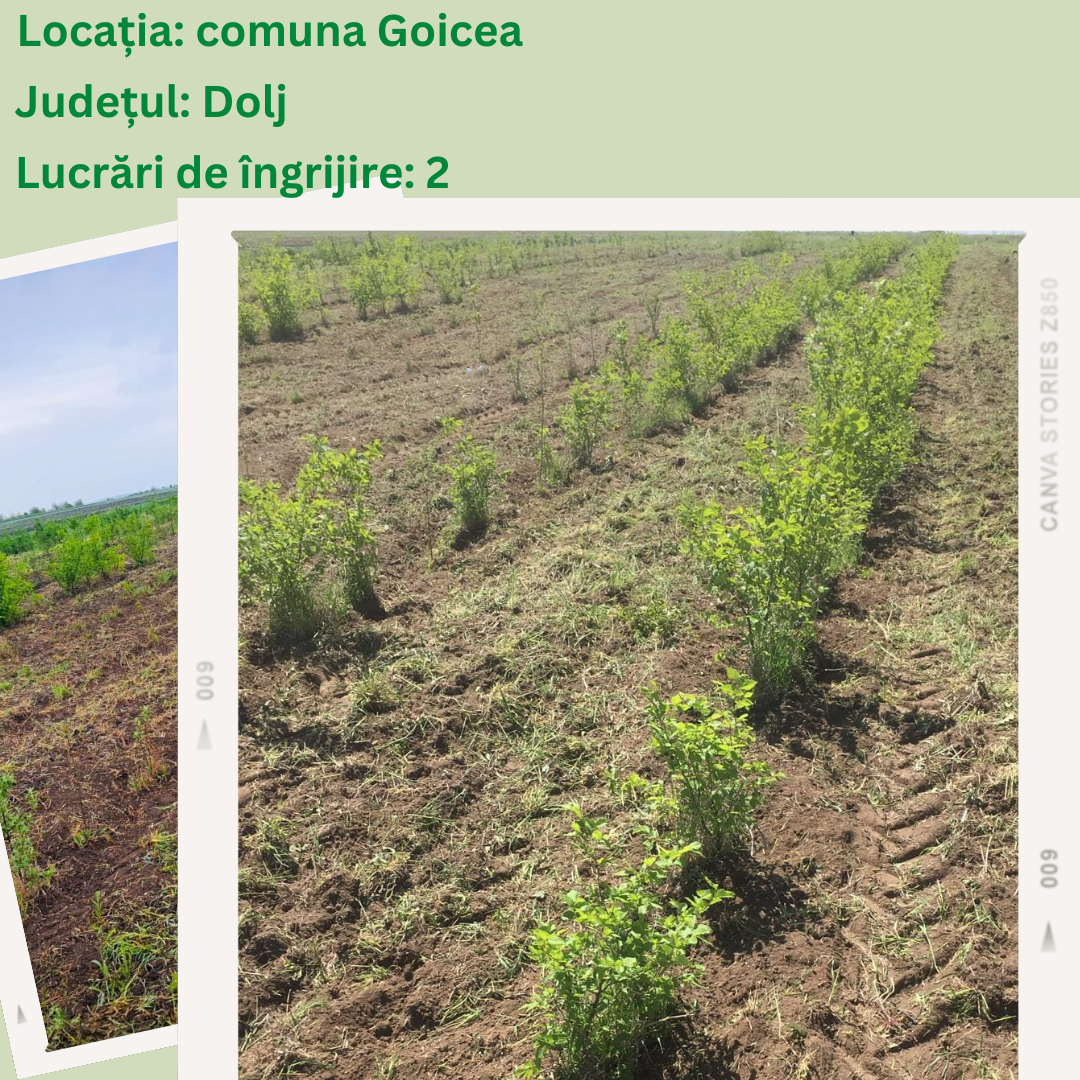 Comuna Goicea, Jud. Dolj – 3 hectare de teren abandonat, plantate în primăvară 2021. Terenul a fost folosit în trecut în exploatarea pietrișului apoi abandonat. Primăria a preluat terenul în curs de degradare și a proritizat reabilitarea acestuia. Astfel, primăria a pus la dispoziție parcela pentru a fi ecologizată prin împădurire, în cadrul programului „Adoptă un Copac!”.