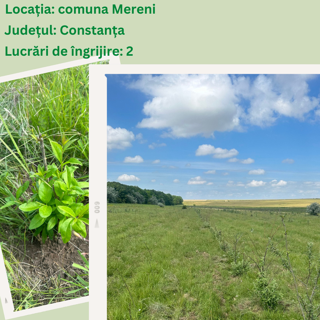 Comuna Mereni, jud. Constanța – 4.2 hectare teren degradat din cauza pășunatului intensiv, plantate în primăvară 2021. Județul Constanța prezintă un grad extrem de scăzut de împădurire – doar 6% din suprafață este acoperită de păduri. Vom continua demersurile de împădurire ale comunei Mereni și în sezonul de plantare toamnă 2021.