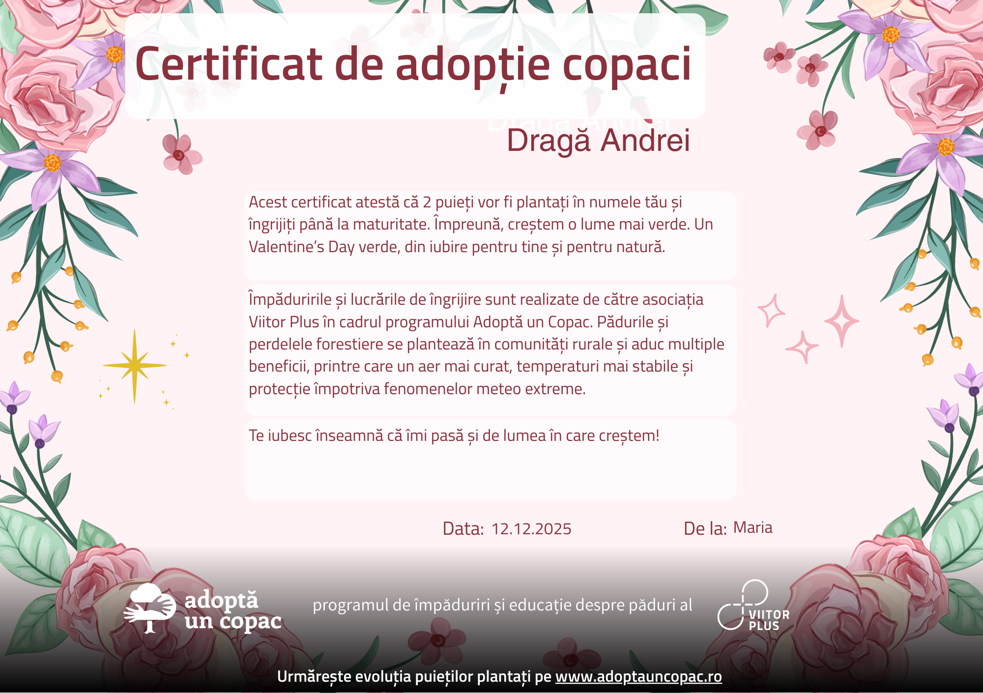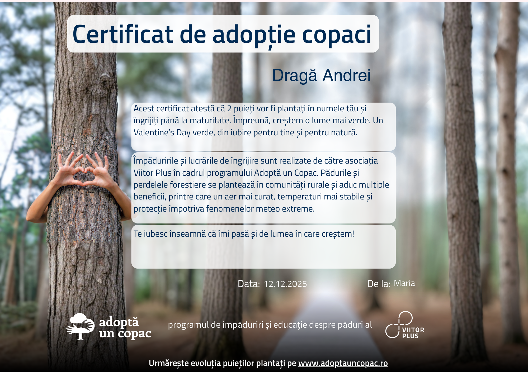 Donate! Every contribution helps! Only 20 RON ensures the planting and care of a brood for the long term.